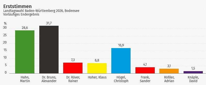 Dr. Alexander Bruns (CDU) ist direkt gewählter Landtagsabgeordneter des Wahlkreises 67 Bodensee. Die Wahlbeteiligung lag bei 70 Prozent.