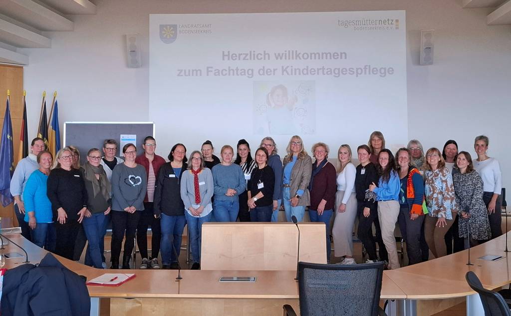 Rund 20 Tagesmütter aus dem Bodenseekreis nahmen am diesjährigen Fachtag der Kindertagespflege teil, zu dem das Jugendamt Bodenseekreis gemeinsam mit dem Tagesmütternetz e. V. am 18. Oktober 2025 eingeladen hatte. Unter dem Motto „Mit Stärke durch den Alltag – kleine und große Übergänge gestalten und Resilienz in der Kindertagespflege fördern“ stand die pädagogische Begleitung von Kindern und die Rolle der Tagespflegepersonen im Mittelpunkt. Der Fachtag bot aber nicht nur Raum für Austausch und Weiterbildung, sondern griff auch aktuelle Entwicklungen auf Landesebene auf: So hat das Land Baden-Württemberg beschlossen, die Kindertagespflege künftig im Orientierungsplan für frühkindliche Bildung zu verankern. Außerdem wird die Vergütung für Kindertagespflegepersonen ab Januar 2026 angehoben.