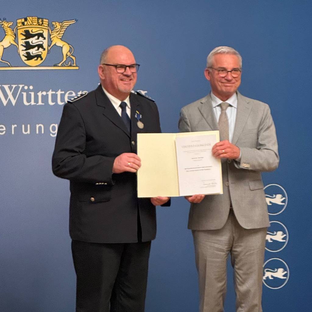 Für seine Verdienste um den Bevölkerungsschutz im Bodenseekreis wurde der stellvertretende Kreisbrandmeister Michael Fischer mit dem Bevölkerungsschutz-Ehrenzeichen des Landes Baden-Württemberg ausgezeichnet. Innenminister Thomas Strobl überreichte die hohe Ehrung, die besonderes Engagement im Zivil- und Katastrophenschutz würdigt, bei einem Festakt für insgesamt 22 ausgezeichnete haupt- und ehrenamtliche Einsatzkräfte am 24. März 2026 in Stuttgart. Fischers Auszeichnung gründet auf über 40 Jahren ehrenamtlicher Tätigkeit in mehreren Schlüsselpositionen bei der Feuerwehr und im Bevölkerungsschutz.
