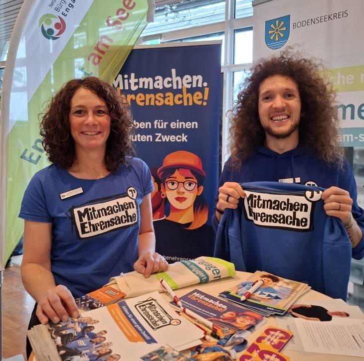Mit rund 100 Unternehmen aus Industrie, öffentlichem Dienst, Handwerk, Gesundheitswesen und dem Bildungsbereich ist die BerufsInfoBörse eine der größten Messen zu Möglichkeiten der Ausbildung, des Studiums und der Weiterbildung im Bodenseekreis. In diesem Jahr war am 29. Januar 2026 das Aktionsbüro von Mitmachen Ehrensache wieder mit dabei, um das Projekt vorzustellen: Kinder und Jugendliche engagieren sich ehrenamtlich und lernen dabei Bewerbungssituationen sowie die Arbeitswelt kennen. Unternehmen und Institutionen knüpfen unkompliziert Kontakt zu motivierten Schülerinnen und Schülern. Soziale Projekte und Organisationen werden durch die Lohnspenden unterstützt und Schulen können unkompliziert bei der beruflichen Orientierung helfen.